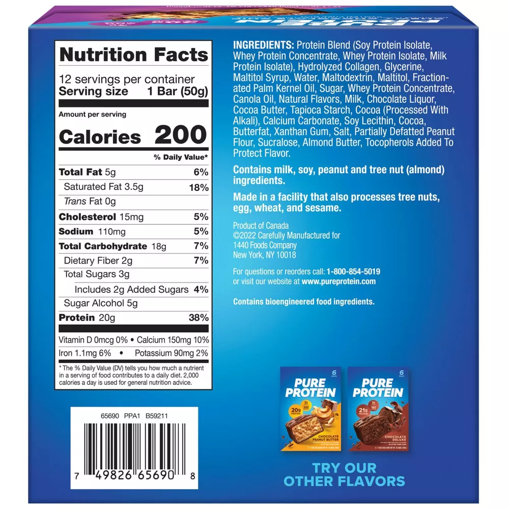 La barrita proteica Pure Protein Chewy Chocolate Chip contiene 20 gramos de proteína, 3 gramos de azucar y 200 calorias. Esta barrita es la combinación perfecta de alto contenido proteico para desarrollar masa muscular magra y fuerza, además de un sabor delicioso; ¡quizás pienses que estás comiendo una galleta con chispas de chocolate!